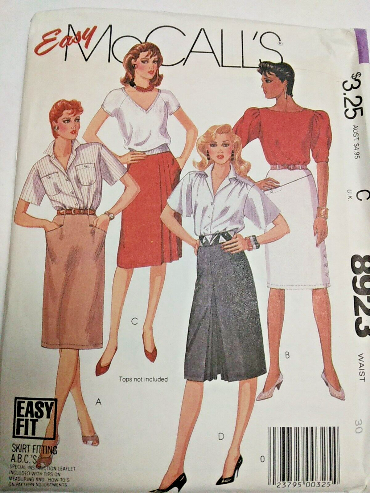 16 Skirt Pencil Slim Straight Easy Mccalls 8923 Sewing Pattern Uc Vtg 80s Pleat Ebay
